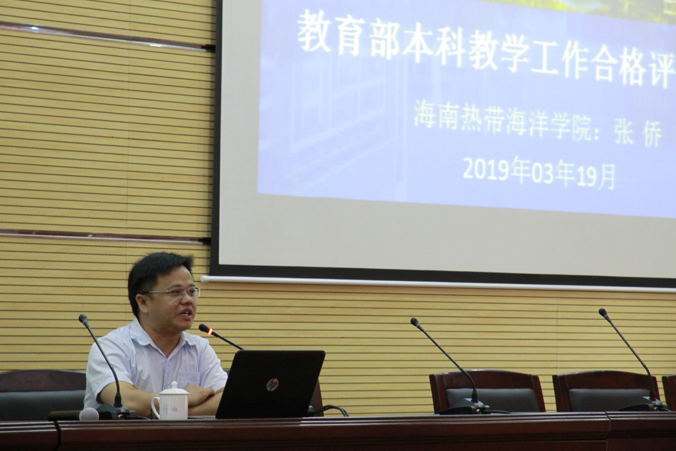 会上,张侨教授结合自身参与海南热带海洋学院本科教学工作合格评估工作的经历与经验,从本科教学工作合格评估的意义、指导思想、指导方针、核心内涵、主要作用、依据、新理念、新方法等方面对“本科教学工作合格评估”进行了详细论述;从本科教学工作合格评估指标体系设置原则、主要特征、调整内容等方面,对“本科教学工作合格评估指标系统”进行了深入解析。此外,张侨教授还结合专家组进校考察的主要内容、主要程序,就学校在专家组进校前和离校后的工作要点进行了细致说明,并提出了普通教师在评估期间的注意事项。