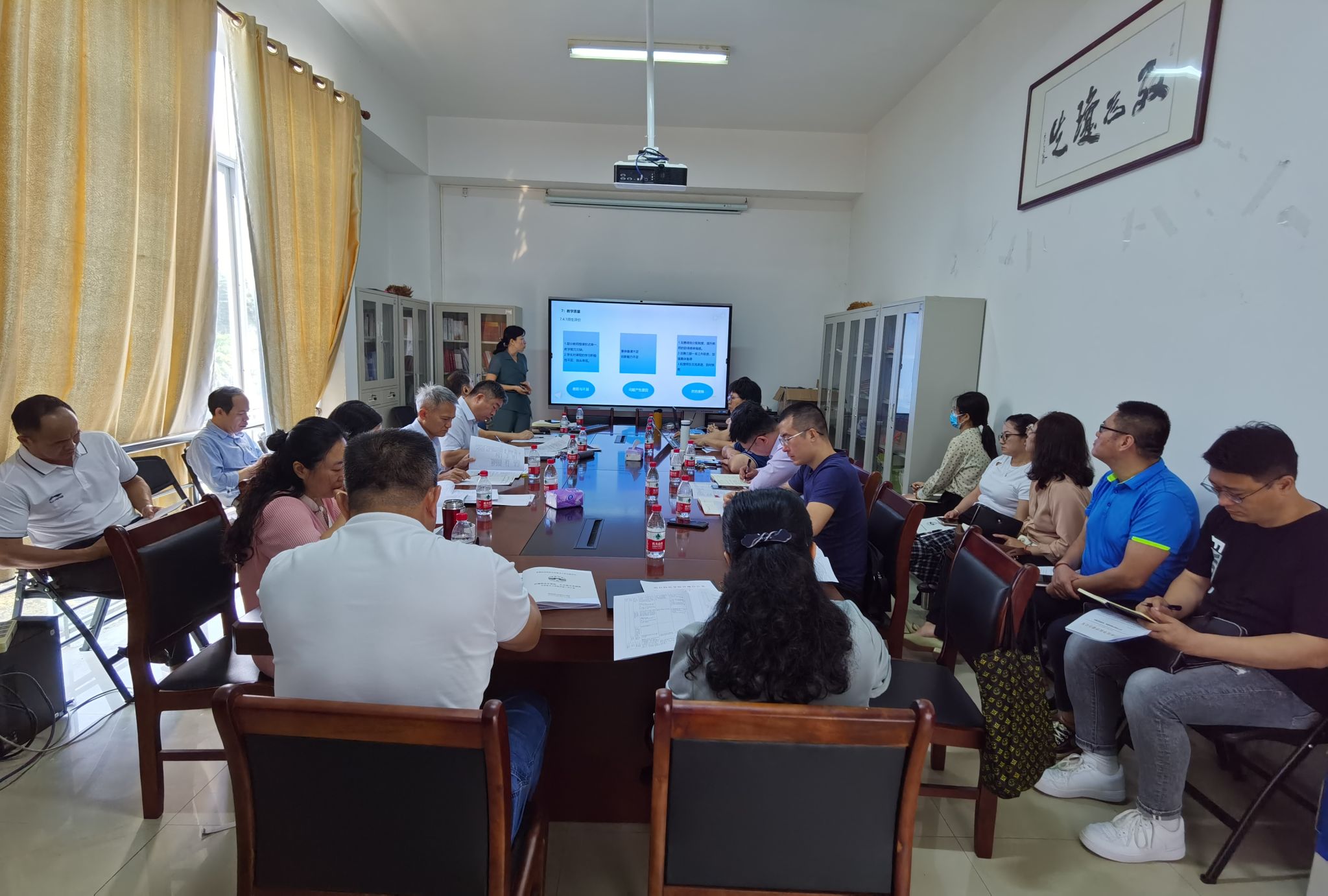 2023324日上午,教学质量监测与评估中心主持召开了“二级学院对标观测点找差距、析原因汇报会”,由马克思主义学院开展汇报工作。教学质量监测与评估中心李长毅主任主持会议,马克思主义学院戴彩虹院长汇报工作。汇报结束后学校特聘专家进行点评并提出指导性建议,银海强副校长作总结讲话。教务处袁霞副处长指出教学存在问题并提出工作要求,学生处叶泽波副处长针对学工建设提出问题,国有资产管理处林强副处长针对设备配置及场地使用提出合理配置、资源共享、优化使用、提高效率等建议,人事处颜为健处长对师资建设提出建议。文学院邢满院长、理学院程睿菁副院长、管理学院李婉琼副院长到现场观摩,并谈心得且提出相关建议。