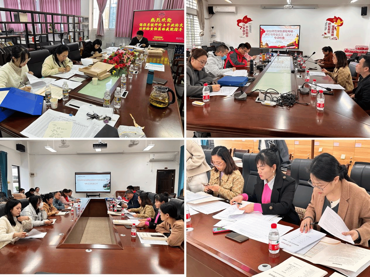 根据分工,12月25日下午至27日,教务处处长石晶、评建办黄细渭副主任和覃晓辉副主任会同各二级学院教学副院长及相关工作人员,分赴文学院、教师教育学院、信息科学技术学院、外国语学院、体育学院、音乐学院、美术学院、马克思主义学院、理学院、学前教育学院,通过听取汇报、查阅材料、反馈问题、学院领导表态等方式,对课程考核整改情况与毕业论文(设计)整改情况进行了检查,并对本学期课程考核工作和2024届毕业论文(设计)工作提出了具体要求。此外,学校还对招生就业工作处以及校团委的2022—2023学年第2学期的课程考核材料及整改情况进行了检查。