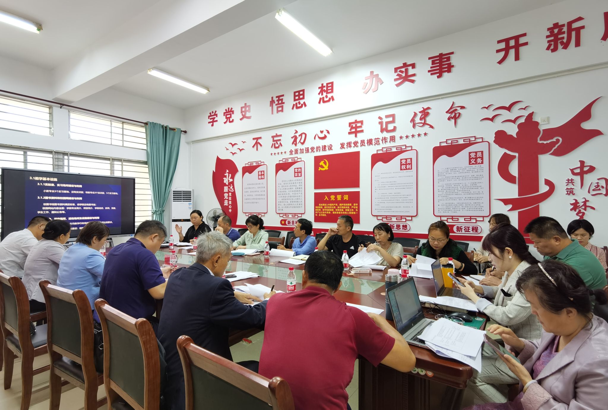 汇报会上,教学质量监测与评估中心李长毅主任就汇报内容对标对表详细展开加以肯定,也对不足之处提出改进建议等。教务处袁霞副处长针对理学院精品课程较少等问题指出要加强精品课程建设。学生工作处叶泽波副处长结合学生工作对理学院的学风、师风师德建设等加以肯定。马克思主义学院戴彩虹院长、外国语学院教学管理人员到现场观摩并谈心得且提出相关建议。最后理学院库俊华院长感谢职能部门及理学院评估骨干人员对评估准备工作的付出,就校领导等提出的理学院评建工作汇报中存在的不足表态,上下齐心,为迎接本科教学合格评估而努力。
