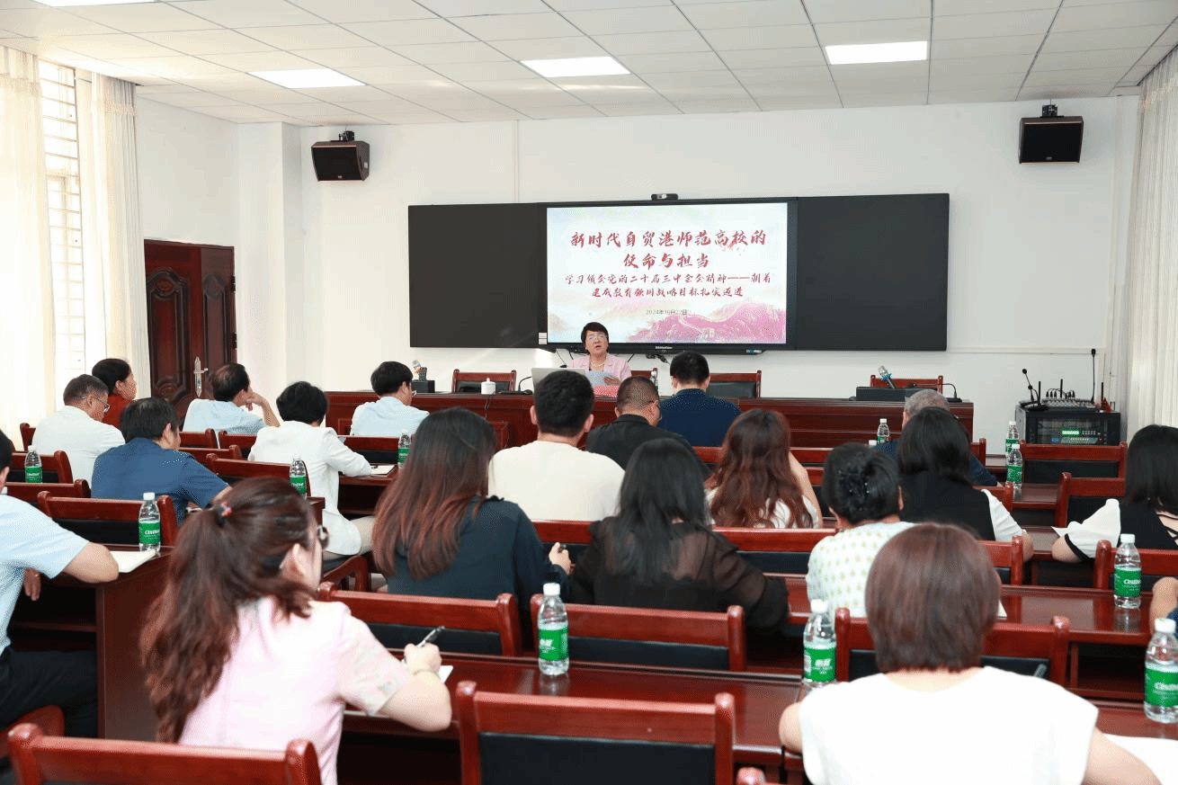 10月22日下午,校党委副书记、校长刘湘洪在行政楼四楼会议室为机关党支部做了题为《新时代自贸港师范高校的使命担当》的专题辅导讲座。报告由机关科研质评中心党支部书记黄细渭主持。